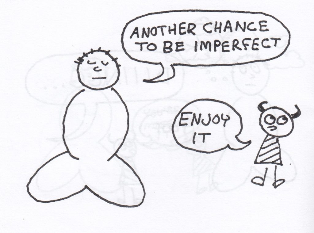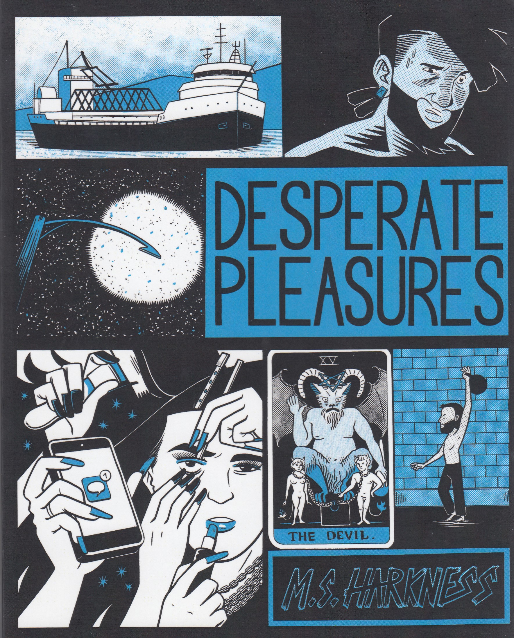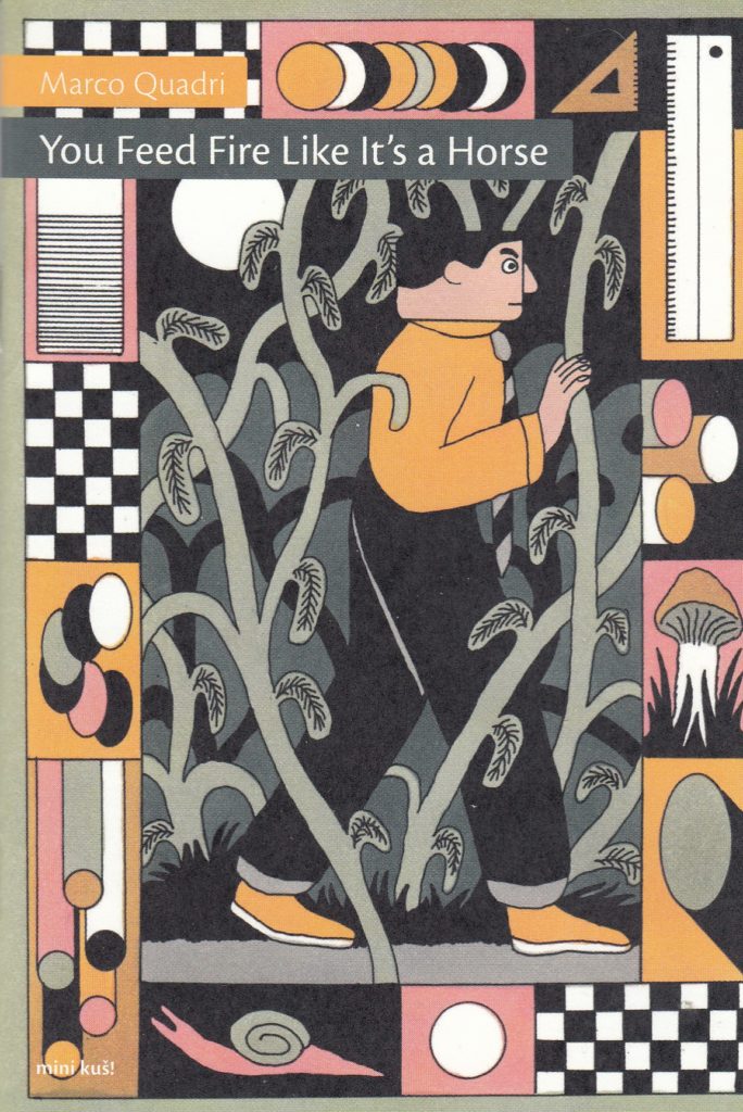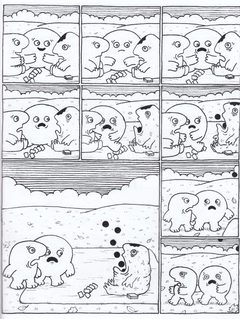 I’m doing my level best to stay focused on this comic, but did you know that she has a comic on her website that’s made entirely out of felt, encased in a felt cheese grater? Granted, it was purchased for a book collection and is not for sale, but wow is that thing ever impressive. It looks like Hannah is working on her first graphic novel at the moment, but she does have a few other comics available, so it’s not like she’s brand new to this. And the bags she has available for sale! OK, I’m wandering far away from this comic, but seriously, check out her website. This is a flip book that’s also an accordion comic, meaning that each of the covers above depicts a different time in her life, and that you need to pull the comic out like an accordion to read it. Kids, accordions are musical instruments that… nah, I don’t have the energy for that. If you can’t picture it, you’re already on the internet, so I’ll bet you know how to find a picture of one. The comic is a snapshot of moods, one where she’s surprised at how casually she ended up with a girlfriend living with her and another by how much better her next relationship is by comparison. It’s a shortie, so there’s not a whole lot to say about it other than it’s universally relatable to everybody who’s ever thought they had it good only to finally find the real thing. The craftsmanship of this book is impressive too; part of my reviewing so many comics over the years means that I’ve reviewed several accordion comics by now, and they inevitably seem to start falling apart after a few reads. This sucker is sturdy and would take some serious effort to pull apart (not that I recommend trying). After reading this I’m very curious about her upcoming graphic novel, so you can expect that to be reviewed here after next year’s Cartoon Crossroads (or sooner if I see it at Chicago Comics or something). $20