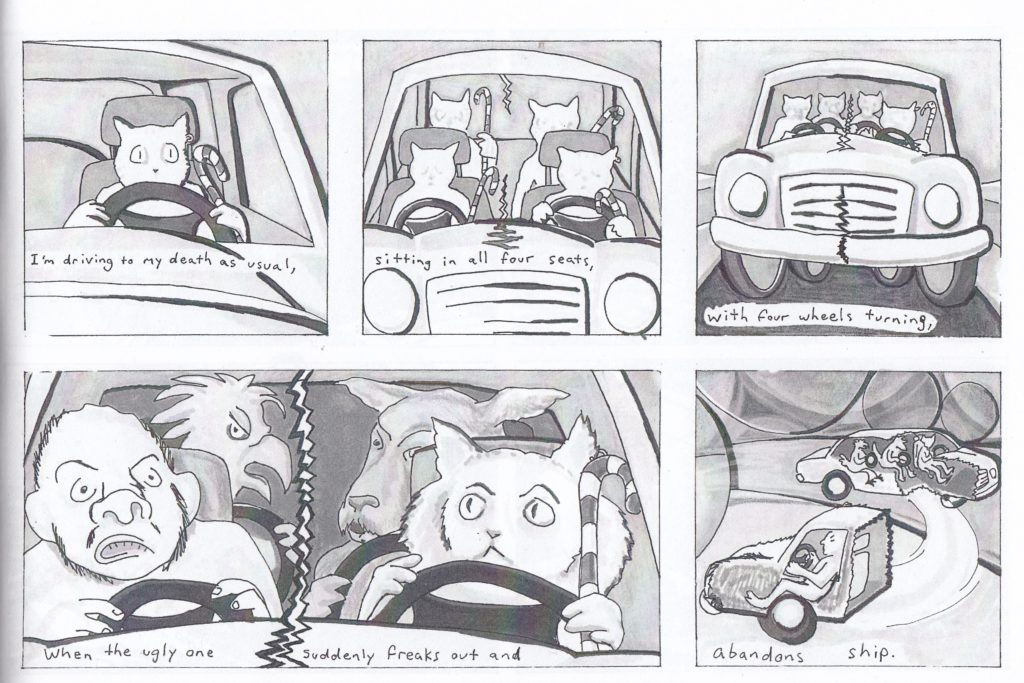 Was I expecting something autobiographical after seeing that title? Reader, you know I was, but this is actually a dream comic. Scott sent along a big bundle of his comics (21 issues I think?) in this series, and they’re arranged by theme. The first five issues are dream comics, but what am I going to do, NOT review the first issue in the series? Madness. Maybe it would have made more sense to review the first five issues as a chunk, but I’m committed to this one now, so maybe don’t be shocked if the next four issues are a bundled review. Trivial information for people who didn’t ask! Scott does dream-like comics very well, and this issue is no exception. Forms are constantly splitting and merging, perspective changes, reality is in doubt, and there’s a general sense of wondering what you just read after finishing it. I mean that in the best possible sense! Trying to describe any kind of dream comic is a fool’s errand, but I’m just that kind of fool. Things start off with a gorgeous sequence of images attempting to coalesce into a theme before finally settling on driving down a highway towards a town named Rapunzel. The car shifts into him being one (or two) stray dogs who had to sing for their supper, which is what he had always been. Their supper was lettuce, which was guarded by witches flying kites. Of course, he never was a dog, which he also figures out eventually. There’s more, but I think you get the general sense of it, and I don’t want to spoil even a dream. More to come, so I’ll have a more informed opinion as I go, but this was intriguing and I’m curious to see more comics in this series. So far I’m only seeing this for sale as a bundle of the first five issues for $25.
