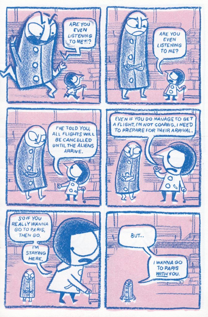 I’ve started this new tradition at cons where if I get to the table for Floating World Comics while I still have money to spend, I’m getting a random graphic novel. Sure, I could spend five minutes going through them to make it less random, but then I’d inevitably want to get half a dozen of them, and since they mostly sell graphic novels and my billionaire benefactor has yet to appear, this seems like a bad idea. I mention all of this to say that I didn’t know a thing about Emma’s work before reading this book, and flipping through it at home made me wonder why I picked it. At first glance the art is crude, but after reading it I’ve revised my opinion of the art upward (it’s sparse, but lush when it needs to be, and it’s not like the many panels of Egbert thinking about his lot in life need lavish backgrounds). But the story more than makes up for anything else I might think is lacking. This is the story of Egbert, a thoroughly miserable dude who only finds meaning in his bird-watching habit. But he’s terrible at that too, consistently being the one with the fewest sightings in his club. Even in his club of kinda sorta societal rejects he stands out as pathetic, and he’s consistently unpleasant enough that he doesn’t evoke any kind of sympathy from his peers. We spend a whole lot of time with Egbert in his (completely alone) home life, where he actually puts himself through “training” to become a better bird watcher (I’m not going to spoil this wonder by revealing his methods), talks a lot about (and to) his “online therapist,” and falls in love with anybody who’s even slightly nice to him (but he doesn’t seem to have much of a idea of what love is). I was settling in for another comics tale of a sad sack loser when something happens that changes the whole dynamic: Egbert finds a severed hand in a tree. Suddenly he has the respect of his peers, has an interview scheduled on the news, and overall thinks this is his big chance to make a splash. And, predictably, it fizzles out; there was never a realistic chance of the evening news airing a long interview with a guy who found a hand. But now Egbert has the itch and knows what he has to do to get attention, so how far will be go to chase that high? It’s a genuinely funny book on top of all of that; the recurring gag of him being called a creep because he was walking around everywhere with binoculars surprised me several times, as did his habit of completely forgetting that he owned a cat. I wouldn’t call it a laugh riot, but it’s an engrossing and balanced read, and Egbert even gets the confrontation he was dreaming about by the end. Check it out, it also turns out that Emma has several other books available, so my graphic novel purchase might be a little less random next year. $20