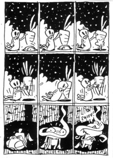 Four years after the first Damian Jay book goes up on this website and I’m just now getting around to reading another comic? Cripes. Anyway, if you happen to be one of those people who likes funny, silent comics, this will be perfect for you. And if you don’t like funny comics, I think you’re missing the point of this whole “life” thing.rabbits, as a rabbit is the first thing it comes across. What follows is a hilarious series of Bugs Bunny-esque hijinx involving various carrots and attempts to get the rabbit to come out of his hole. Laughing out loud is always a good thing with comics, and that happened more than a few times in the short reading time of this one. One look at Damian’s website also shows me that there are plenty of comics that I’ve been missing out on over the years, something I hope to rectify before another four years go by… $2
