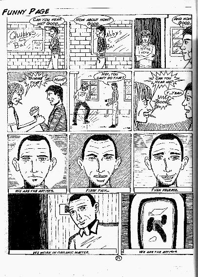 Another random shortie, another one filled with potential. The art is good, if a little rough at times, but nothing that I can’t see being tons better a few issues down the road. Same with the dialogue. A little silly and awkward at times, but overall solid and it’s the kind of thing that gets a lot easier with a few comics under the belt. There are a few stories in this. One’s about working in a fast food joint and, in a switch, is less about angst over this fact (although it is mentioned) than it is about corruption and corporations. Or I’ve been listening to NPR too much today, take your pick. The dream story in the beginning was a nice intro to the book. It looked like a silly fantasy book with the sword and all, then he takes a turn and you don’t know what to expect. Overall, it was a little raw, but I liked it. Who knows, these stories might all be going places and I just don’t know it yet.