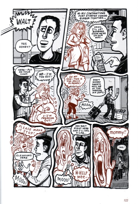 Whenever anybody only slightly familiar with comics would ask me what were some of the great uncollected graphic novels (or something approaching the nebulous term “graphic novel”) out there, I would always lead with Peter Kuper. Bleeding Heart and The Wild Life were two of the great, though short-lived, titles of the 90’s. Or was it even as far back as the 80’s? Either way, they told, in small pieces, the story of Peter’s awakening as an artist and a human being, him experimenting with drugs and sex, and were told with such brutal honesty and artistry that is was impossible not to take them as the best of the craft. This book collects those stories, wraps them around new interstitial bits, and throws in some new material from the years since those two series were widely available. In this volume Peter, loosely disguised as Walt, grows up (trying to have sex, with little success, along the way), does a lot of drugs, bemoans at least one relationship that he was clearly better off without, and finally has a kid of his own. Peter’s work is pretty widely available for a cartoonist these days, there are plenty of things on this page you can get from Amazon, a little digging will get you through to most of his other published work. Still, I’d maintain that not only is this volume the best thing he’s ever done, it’s one of the best things ever done in the medium. Many people before and after (but mostly after) Peter tried to pull off autobiography like this, brutally honest but still not completely focused on self-indulgent navel gazing, and very few of them came close to pulling it off this well. This is simply one of the best books of this or any other year, and it’s about damned time that it’s available in a “respectable” format. It’s $20, cheaper through most of the online stores, and if you like comics even a little bit there’s no chance that you’ll regret getting this.