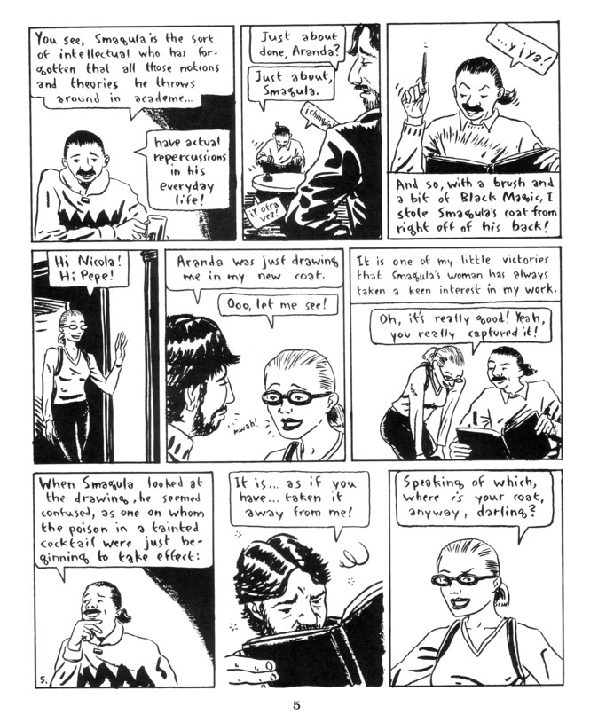 Regular comic series being put out by any of the “major” independent comic publishers these days are almost extinct, so it’s great to see any additions at all. It’s even better when the new book is almost thoroughly enjoyable. The only part I didn’t like was the “Exercises in Style” bit at the end where he told the same story several times using different cartooning styles. I didn’t even hate that, it just kind of bugged me for some reason. It’s interesting in theory, and I can see why he would want to experiment, I was just bored. The rest of the book was great. The opening story was in SPX 2001, so if you’ve read that you know what I’m talking about. The bulk of the book was about the last night in town of one man and what he does with it. A fascinating, real story about how some things just don’t get worked out. Sure, it’s about a lot more than that, I’m just projecting here. Visit his website for ordering info and bug him to keep putting these out while you’re at it…