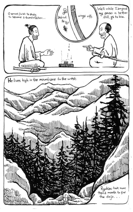 Two really great stories in this one. The first is the tale of a young swordsman who is trying to train with the best swordsman in the land. It’s about patience and not accepting everything as it appears. The second is all pictures, about a dog and its quest to find the meaning of life. It was done extremely well, with drawn backgrounds and pictures of a whole cast of characters. Then at the end of the book you have a few full page panels which showcase just how incredible of an artist this guy is. This is a great series (from what I can tell from the issues I’ve seen, anyway), and I don’t think it gets anywhere near the attention it deserves. Yes, I would be saying that even if I wasn’t selling some copies on my website. Contact info is up there if you need more samples!