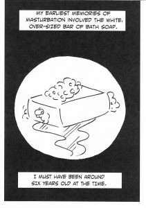 OK, so maybe Carrie Q. Contrary isn’t the author’s actual name. So what? I have my doubts about Dexter Cockburn too, but I thoroughly enjoy his comics, so who cares? Besides, the modern world still hasn’t quite caught up to the fact that you can write and draw stories with sexy bits strewn about without being considered a pervert at best, so why not use a pseudonym? There are two longer stories in this one and one short piece. It starts off with the daydream of our heroine as she imagines growing to gargantuan size, shoving a writhing guy into her vagina to serve as a living dildo and an army of men who are willing to service her. Yeah, it’s also explicit as all hell, so watch out for that/enjoy, depending on your level of sexual maturity. The short piece has a nice little punchline that I’m not going to ruin, and the second longer piece deals with Carrie’s discovery of her own sexuality. It all started innocently enough, as these things generally do when kids get so little instruction about those feelings from authority figures, and progressed to her late grade school years. Which means that it remained pretty damned innocent for the duration of the book. It’s a damned solid comic, although if naked people and sex offend you then you should run for your sad, fragile innocence. Three cheers for Dexter and his Comix Company (although I could have done with a better company name) putting together generally smart and sexy adult comics, and this one creeps dangerously close to informative at times. Keep up the good work, you dirty, dirty perverts! $4