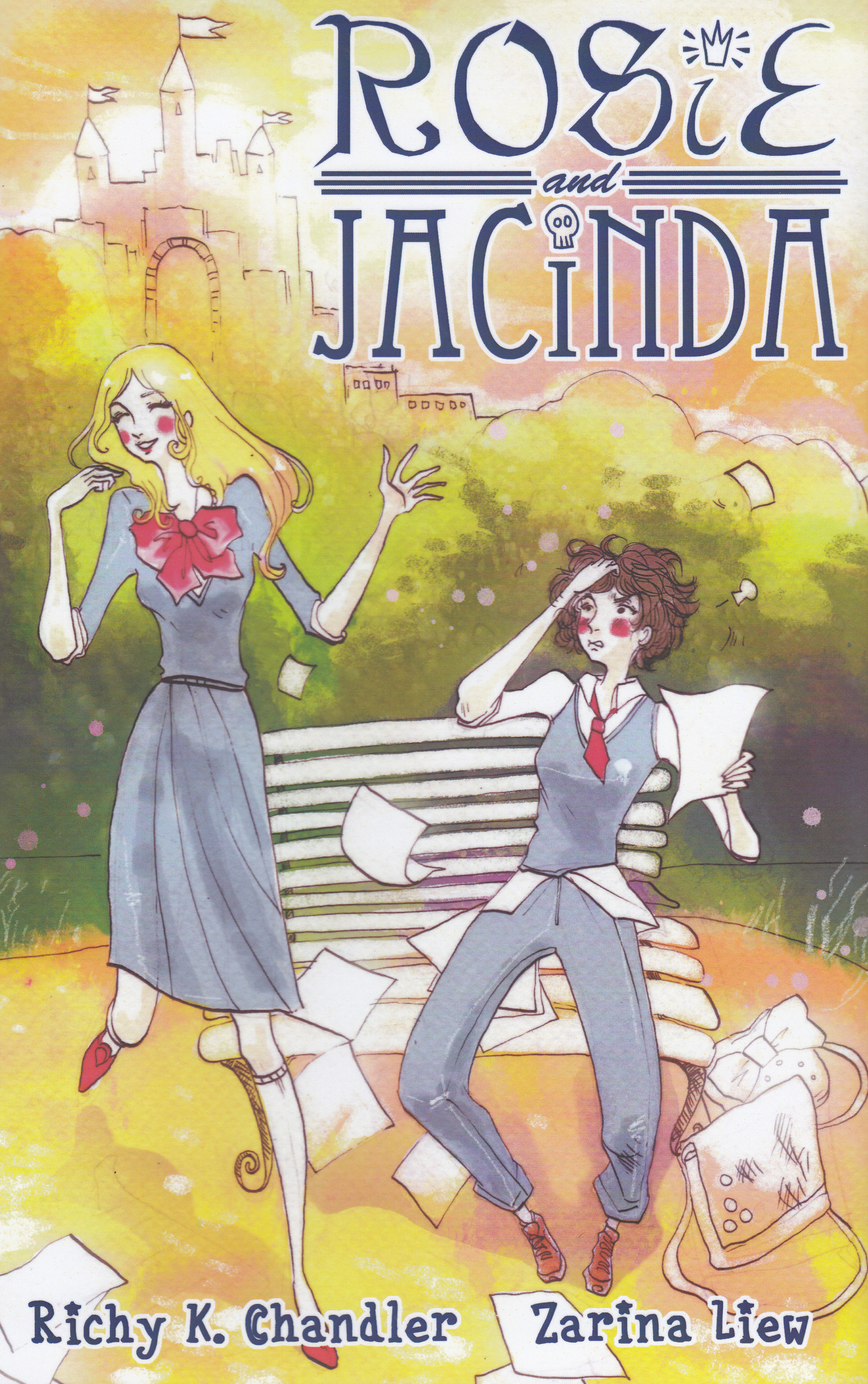 There are times when I feel exceptionally lazy with the whole reviewing thing, and in those times I like to see if the blurb from the creators explaining their comic is accurate. In this case it’s “a teenage romantic comedy with a hint of fairytale,” and yeah, that sums is up pretty well. Still, I’m going to go out on a limb and assume that people don’t come here to read blurbs that they could get from any website, so I’ll go on about it a bit. This is the story of Jacinda (a sullen teen who hates everyone, mostly because she’s convinced that she’s smarter than everybody else) and Rosie. Rosie takes a bit more explanation, because we’re led to believe that she may or may not be entirely human. The story of Sleeping Beauty is featured heavily in this book, and Rosie also gets knocked out for a bit after being pricked by a pin. She woke up naturally, leaving the whole thing still delightfully vague. I’m getting ahead of myself a bit, as Rosie is a French exchange student who asks to sit with Jacinda. She then rejects an invitation to sit with the cool kids, endearing herself to Jacinda a bit, and confides to Jacinda that she’s never even kissed a boy (despite a chunk of the male population of the school trying), which cements their friendship. From there they both try out for a play (mostly because it’s a class requirement; Rosie gets a big part and Jacinda gets costume duty) and the rest of the issue deals with them becoming better friends and the various troubles involved with doing a play. It’s very much aimed towards the teenage crowd, and here’s hoping that there’s a female teenage crowd that loves comics, as there probably aren’t nearly enough explosions for most teenage boys. Richy has already proved to me that he’s a gifted writer and Zarina is perfect for this story. The art is whimsical with a slight touch of anime style, but not enough to turn you off if you hate that sort of thing. The coloring also goes a long way to really filling out the art and, again, it’s excellently done. No price listed, but I’m guessing it’s roughly $6. I did mention that I was guessing, right?