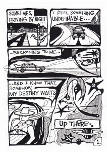 So here’s one possible spoiler alert to start the review, although I’m not at all sure that it’s a spoiler: this issue is a prequel to the first issue in this series. I checked on his website and Frank has all of the past issues up for free, so it’s not as bad of an idea as I originally thought, but it would still help if that information was given out at the start of the issue. But hey, who am I to tell the man his business? This also means that I’ll have to go back and read the entire series now that I can see that he has a clear plan, but I don’t have the time at the moment, so consider this another half-assed review. Huzzah! Well, I will use my whole ass to review this particular issue, which sounds terrible, so let’s just forget that I said it. This is one of those rare cases where I used the first page as the sample page, so you can see how he starts things off. From there we meet Kid Sampson, see a calamity at an air show, learn the truth about the minotaur myth, have possibly the quickest saving of the world that I’ve ever seen (hey, it’s a prequel; it’s kind of a given that the world will be saved), and even get a very brief glimpse of the monkey. I’ve thoroughly enjoyed the madcap charm of the issues of this series that I’ve read so far, and this one is slightly lacking in that department (which is bound to happen when the monkey and the rhino are absent), but their loss is allowed because now I can see that Frank is building something here. That wasn’t entirely clear to begin with, but it instantly makes to curious to see more. And to read the earlier issues, which you could do right now if the mood struck you. He has everything up there except for this one. No price, but a couple of bucks sounds reasonable.
