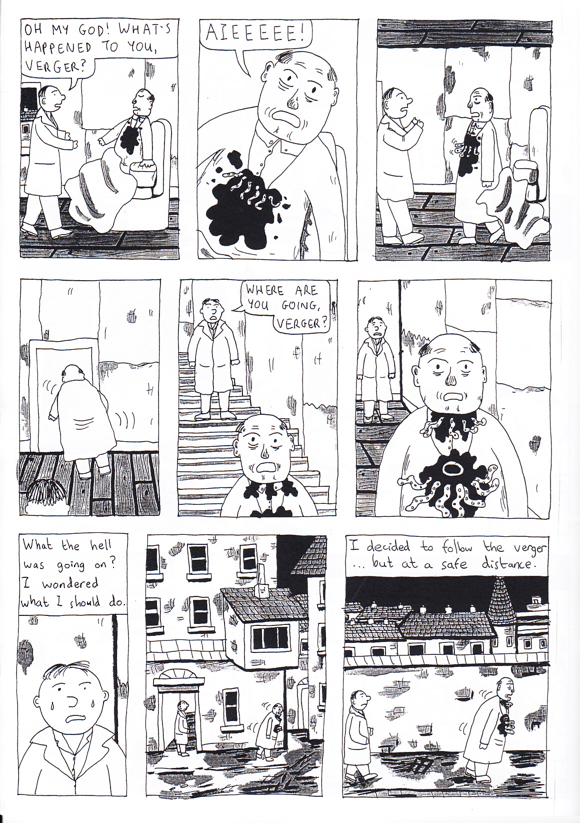 Well, this has gone from being a bit like “Grapes of Wrath” to being a lot closer to something from H.P. Lovecraft. And they go together much better than you may think! In this issue we see a tiny bit more of what’s out there in that forest, the whole family is finally together in California (with a few mysterious stops by Jake along the way), the water that was so suspicious gets made into communion wine, Billy gets a job where he sees a few more suspicious things, and a cellar is uncovered in an old mansion. See, this is there it gets tricky, as I don’t want to tell you anything past “buy this already,” and that failing has dogged me through 11+ years of writing these reviews. So join me as I try, once again, to thread that needle! The story is building up nicely, and the next issue (which Rob was nice enough to include with this one) promises to finally start revealing some of the mysteries. The last few pages, where ____ gets to the ____, were creepy as hell and set up the next issue perfectly. And those creepy glimpses of the _____ in the forest were done very well. So, like I said earlier: buy it already!