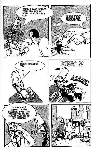 OK, I was really hoping that this issue would change my opinion of this series one way or another, but it didn’t. I did learn that this is all supposed to be a parody/tribute of the old Charlie Chan movies, which is something that’s incredibly obvious in hindsight and should make you all question if I have any idea what I’m talking about ever. This one is the start of a series about a plot to steal a “baseball diamond”, and yes, most of the puns really are that bad. It’s probably not bad if you liked the old Charlie Chan stuff or appreciate that type of humor, but it just isn’t the thing for me. Contact info is up there…