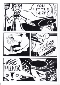 Has there ever been a leading man named “Chest” before? Because “Chest Palmero” is one of the better names for a boxer that I’ve ever heard. This comic is unconnected from past issues, so don’t worry about being lost by that “#10” on the cover. Things start out with Chest stealing some food as a little kid in 1932. He’s chased down by the robot police (suggesting that maybe this is not quite the 1932 that we were thinking of) and, given the chance to surrender or fight, he fights. We don’t see what happens in that fight but instead are moved forwards to 1955 as Chest is defeated by a robot for his boxing championship. From there we get to learn a bit more about these robots and Chest’s plan to take them all down. I love how damned near every panel that Frank draws has such a manic energy to it. I’m not sure if I’ve ever seen biting into an apple done as an action panel, and there’s a constant sense of forward motion to go along with all the general weirdness. The perspective is a little bit off here and there (when Chest chokes the homeless guy I’d swear the guy’s head shrinks quite a bit), but that’s a minor quibble for such a fun story. Buy some of his books, the guy deserves a reward for making it to double digits. $2