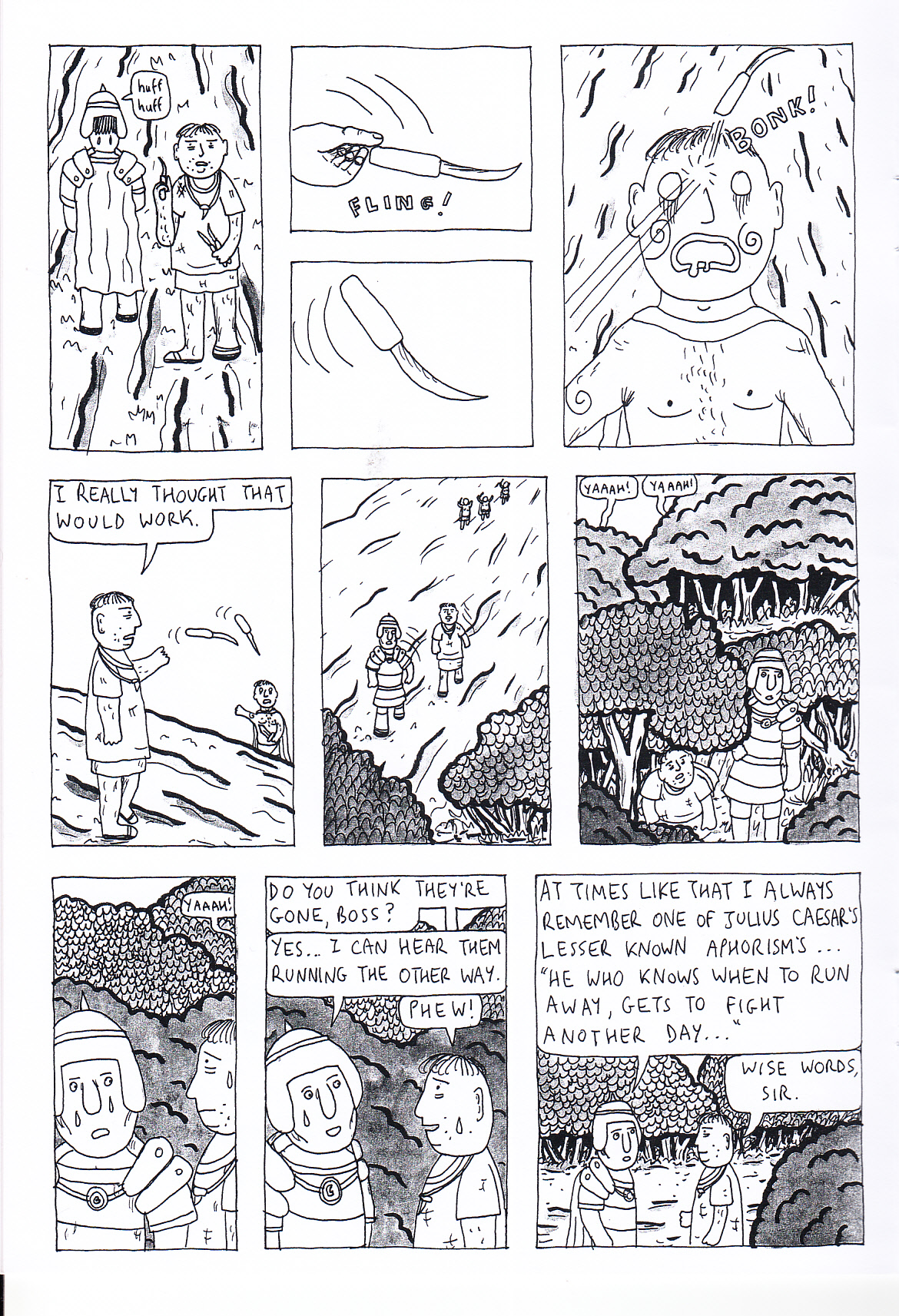 Are you ready for a mystery involving the Romans set way back when they were a thing? Well, THE thing, really, as their empire lasted for centuries, but in theory you already know that. Anyway! A caravan of Romans arrives to investigate some killings and disappearances. The local authorities are baffled, but a slob of a trained slave (with impeccable training and credentials) comes along to try and help them solve the mystery. As a local official says of the suspects, “I tried crucifying them, I tried not crucifying them. I’m at my wit’s end.” An examination of the body turns up traces of poison, and the chef of the poisoned man kills himself while leaving a note confessing to the crime, but it all feels just a little too convenient. So the investigation continues, a strange substance is discovered, and all that’s left to do is to try it out on a suspect. Best not to say much more about the story for now, but Rob has turned into a master of endings, and this one is no exception. Those last two pages are something else, and they have me all kinds of intrigued to see just what this Megapode is supposed to be. He was also nice enough to send me the entire series, so I’ll be reviewing the next two issues over the next couple of weeks. That breaks with my usual policy of spacing out reviews from the same author, but I’m curious to see where this is going and you’re not the boss of me, so I’ll do what I want! Not that anybody ever actually complained about it or anything…