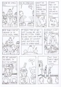 This review will serve as your regular reminder that Rob Jackson is a comics making machine and you should be ashamed that the amount of comics you make in a year will never match his. Luckily it’s not a competition, but there are very few comics artists working who’ve put out the amount of quality work that this guy has over the last decade. And he has a consistent track record of being nice enough to finish his comics series, meaning that you shouldn’t be afraid of future disappointment with that “#1” in the title. Believe me, he knows where he’s going with this. This, by the way, being the story of a new kid at a school who’s given the instructions that he can’t get in any trouble for fighting. This immediately puts the new kid in a tough spot, as the school is run by a bully named King Penguin. Who looks like a weird human/bird hybrid. Yes, this is mentioned almost immediately by one of the characters, and other characters include a pirate (complete with peg leg), a student in full armor, a teacher who throws hot soup on unruly students and a headmaster in wizard robes. This issue sets up this world nicely, as our hero has all kinds of trouble fitting in without causing any sort of problems that would attract the attention of his father while navigating a world with that bully after him. And the several other school factions that could theoretically protect him from this bully, assuming he can figure out what they want instead. His mother is a mystery; she’s bedridden behind some curtains at home but we never see her. So yeah, this is a nice solid bit of world building, with a varied cast of characters that could go in a number of directions moving forward.