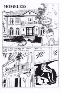 To every comics artist out there who worries endlessly about putting out comics on a regular basis, you could do a lot more than emulating David. The bulk of his stories are short, usually only a few pages long. This lets him submit comics for all kinds of anthologies, and every year or so he has more than enough material to put out a book of his own. See how easy it is? Granted, lots of artists only deal with larger stories, but at least having the ability to work on shorter stories would be a nice change of pace for whenever you get stuck on whatever epic you’re working on. So hey, enough of the life advice, how about this comic? The bulk of these 40 (!) stories are written and drawn by David, with about a dozen of them coming from other artists. There’s no central underlying theme, just a big old pile of stories about all sorts of things. OK fine, his “I Live With a Killer” stories (about how his cat brings him pieces of various animals it’s killed) have a connecting theme, but they’re the exception here. Other highlights include the final thoughts of thelast two survivors from a plane crash, our first encounter with aliens, petty space station revenge, the man who’s always falling in love, the story and fate of Dolly the cloned sheep, a story of a missile attack (written by his son I think?), the concept of putting people in concerts who just want to talk for the whole show in their own section, exactly how much of your life you waste on vacuuming, skipping an internet video only to see it on the actual news later, a comic about making a comic that sort of eats itself (drawn by Zu Dominiak), the story a mouse brings back home after nearly being eaten, the robot and the monster, and the inner lives of a couple of flies. That’s what, not even half of the stories here? It’s another pretty fantastic bunch of stories from David, and if you’ve somehow gotten this far in life without seeing his work this is a solid chunk of comics to start with. No price listed, so I’m going to guess the arbitrary number of $10. Contact David and I’m sure he can set you straight…
