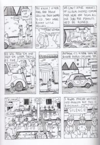 It never ceases to amaze me how far Rob can get from the humble beginnings of a story. This one, for example, starts off simply enough, with a gang of guys waiting for the right moment to strip a car of its tires. Right away the title doesn’t make a whole lot of sense, right? Yeah, you have to wait for the payoff on that one. Anyway, we learn that these guys had been saving money, and they finally have enough to go to “Big Town.” From here we learn that this gang is actually made up of tiny people, and there’s some serious friction with the larger folk. But we also soon learn that there are even larger people involved, and eventually we start to piece together exactly what kind of a society we’re dealing with. They’re forced to retreat to yet another society, which is where we learn exactly how people ended up as different sizes, with different expectations as to what roles they’re meant to fill in society. Oh, and at this point the comic isn’t even halfway done yet. Rob has always excelled at filling his comics with imaginative details, which is even more impressive when you consider that (outside of a few exceptions) he works in single issues, meaning he’s starting over from scratch every time. Anybody who’s looking to excel in comics should take a look at his workload and history, there’s a lot here that should be emulated. About the only negative thing I have to say is the same thing I’ve said a bunch of times probably by now: I wish he had a better command of the your/you’re differences. Oddly, I enjoy his comics so much that I’ve made peace with it. And if you knew how much I enjoyed being a pedant about that sort of thing, you’d understand why that’s such a big deal. Prices are listed in Euros, so in American dollars for this 52 page book I’m guessing… maybe $10? Somewhere around there, anyway. It’s worth a look, so go look at conversion rates. If you give him too much money, just ask him to send along some of his other books to make up the difference…
