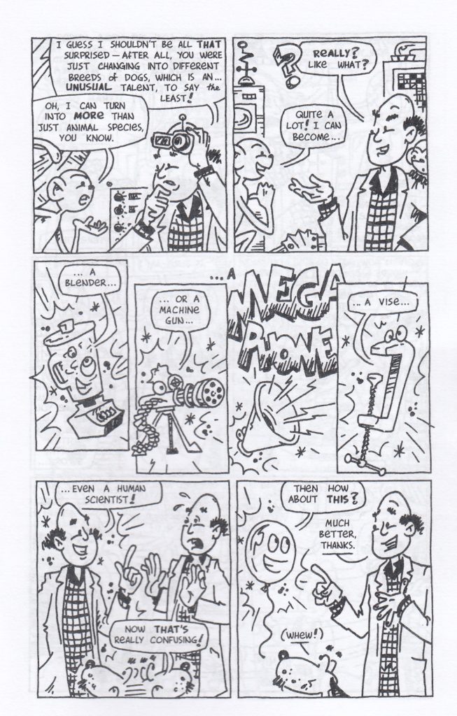 When I saw in the intro for this book that it had been 8 years since the last issue, my first thought was simple. Did I review the first issue 8 years ago? Yep, I sure did! OK, so did I like it? Yes again! OK, so what do I remember about it? Um… not much. Hey, you try remembering every comic you’ve ever read when you write at least a few reviews a week (and five a week for several years). Anyway, one thing I mentioned in the last review was that I had no idea how to follow Dale’s Watusi story, as he referenced several things that were clearly part of a past series. Well, this time around he uses footnotes to explain exactly when the past action happened, so at least it’s a mystery that can be solved now. The man has 39 issues of his Watusi series out (not to mention his other comics), so it’s easy to see why things get hard to keep track of. His story picks up directly from #1 and deals with the shape shifting creature, how he got here, what he did on previous trips to visit, and a demonstration of his skills. Next issue we get his full origin, so here’s hoping it’s not another 8 years before that happens. There’s also Tom’s story, which is a self-contained story about a boy who invents his own curse word to avoid getting into trouble. Throw in a giant robot that’s out to destroy the world and things end up coming together quite nicely. It’s a measly $2, give it a shot you cheapskates!