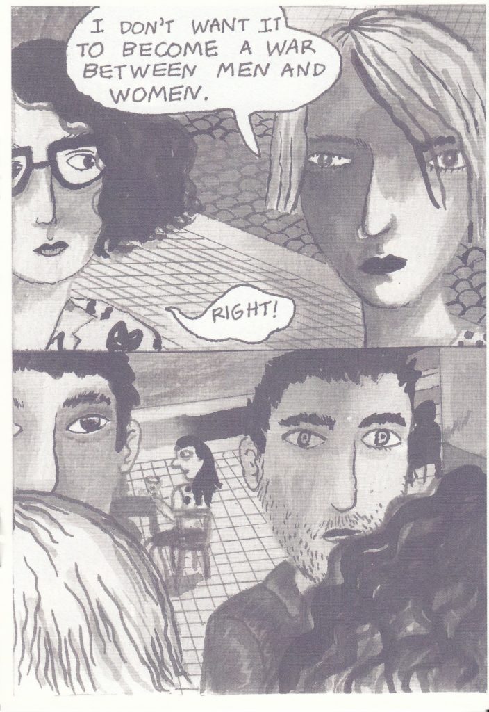 Could this be the most straightforward of the mini kus comics? Nah, the ending alone blows that idea out of the water, but it’s bad form to talk about the ending of a book, so I won’t do that. But the bulk of it is a narrative that’s easy to follow, so maybe this is the mini kus book you should keep on your coffee table to get people hooked when they come over and thumb through the random comics you leave out. Anyway, the story here is about our hero, as she just wants a night out after a rough week of working on a comic about sexual abuse. She meets up with a friend, they get a drink, move on to another location and meet up with a couple of guys (it’s not clear if they were waiting for the ladies to show up or were just friendly strangers; it also doesn’t matter a whole lot). After they’re seated they have a fascinating conversation that’s interrupted by some cops with their guns drawn, looking for a burglar. Finally the evening comes to a close and the three other people take an Uber together, while Paola heads home on her bike. This is where the mildly confusing ending happens, but I think I’ve figured it out while I was writing this. Maybe. Give this one a look, if you’re bothered by how open to interpretation some of these mini kus books can be, this one should ease your worries. $6