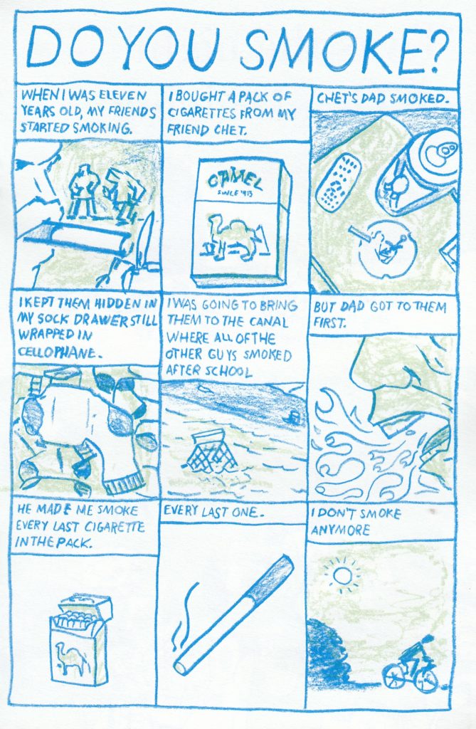 I have to be the last person who reads comics and even notices things like this, but maybe people shouldn’t bother putting “#1” on their books at all and just start with “#2” if they make it to a second issue. Aw, why am I starting this out by being all cynical? This comic was a delight. It’s just that I’m entering (or I’ve been there for years, depending on your perspective) old crank status as a small press comics reader, and boy howdy could I ever show you a giant stack of comics that never made it past the first issue. Still, this one has an ongoing story and a call for reader’s letters on the back inside cover, so I’m going to smother my cynicism and say that this one will definitely continue. Besides, he has a number of other comics on his website, so he’s stuck on this comics crazy train with the rest of us. So anyway, what’s this one about? Two main stories, and one single page story that I went ahead and used as a sample image. What, nobody out there can relate to that story? First up is the ongoing story, and it starts off with Rick trying to get Martha out of the house for their planned trip to Paris. Martha is not going, and she has one heck of a story as to why that’s the case, but I’m not going to tell you about it. Then there’s the l’il story, followed by a Thanksgiving poem (hey, timely! Future readers, this review came out the week after Thanksgiving 2021. Even farther future readers, Thanksgiving used to be a holiday before we all realized what a ghastly thing that whole idea was to celebrate). This poem is all about the robot who’s cooking and serving a family for the holiday, along with his terrible decision to follow the advice of a drunken uncle. The inside back cover was pretty funny too, as we get a peek into the mind of Henry as he decides what to do with the inside back cover. Meta, I know, but also hilarious. Like I said, I enjoyed it, and if he hasn’t written himself into a corner already I’m looking forwards to seeing what happens next. Which is the whole point of a #1, right? $6.99
