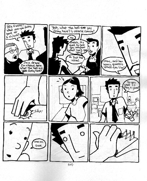 Do you like cheesy 80’s movies? Specifically, do you like cheesy 80’s movies, like Karate Kid, about people who overcome insurmountable odds to win against the bad guys, usually with the sounds of “Eye of the Tiger” or something similar in the background? If you do, you’ll love this comic. If you don’t, well, this might not be your thing. It’s a fairly simple story. A man named Indy is forced to give up his favorite thing in the world, air hockey, by his girlfriend. Earlier in his life he had watched his Dad lose a tournament and he’s wanted to get even ever since. He meets a girl in a bar who’s a great player and he finds himself getting back into the air hockey world and is talked into entering an air hockey tournament. There’s even a couple of pages that detail his training with the lyrics to “Eye of the Tiger”. You can see where this is going, right? Indy finds himself playing the man who beat his father and, while I’m not going to give away the ending, shame on you if you can’t figure it out. It’s a fun book, that’s true, but if you’re at the point in your life where 80’s movies have lost their nostalgic charm and now they’re just obnoxious, you’re not going to like this book very much. If not, the art’s great, the writing is good (although cheesy, but if you’re going for the 80’s movie theme it’s hard to avoid cheesy), it’s worth a look.And I’m really curious if there are any air hockey tournaments, because I’d love to go to one.