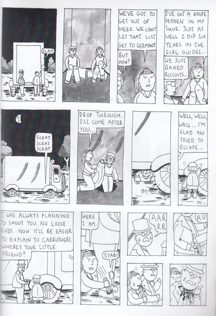 One of the most prolific people in comics is at it again, and this time it’s about a historical event. Well, sort of. I don’t think this is based on a true story, but that’s also the beauty of it: if it was a true story, chances are that none of us would have ever heard of it. Things start off with an illustrator putting together a children’s book until she’s interrupted by air raid sirens. She’s in England in World War II, and that sort of thing was all too common back then. Edie is also feeling like she could do more to help in the war effort, so after lunch with a friend she meets up with another friend who’s involved in the intelligence aspect of the war. Edie’s plan was to help by drawing some illustrations to be placed around town, but instead she finds out that an old boyfriend of hers is suspected of being a spy for the Germans, so she somewhat reluctantly takes up the job of ingratiating herself with him again. After a brief training session she takes a job near his house and “happens” to run into him. She’s not suspicious at first, but after planting a bug in his phone and listening in she starts to have other ideas. From there it’s a bit of a cat and mouse game, with her trying not to get discovered and him refusing to listen to the suspicions of his friend telling him that her timing in arriving was entirely too convenient. And if you’re wondering if all this sneaking around leads to a big old shoot-em-up eventually, you had better believe that it does. I don’t remember the rules on the size of “actual” graphic novels, but this is 72 pages (per his website) and sure feels like a graphic novel to me. There’s also a lovely epilogue that I sadly can’t spoil, but just trust me on this, OK? If you’re looking to get somebody into Rob’s work (or if you’ve been holding off on taking the plunge yourself), this would be an excellent place to start. Based on historical events, with none of the weirdness that I love so much/that might turn off the more normal folk. I’m lousy at conversion, but it’s probably right around $10.