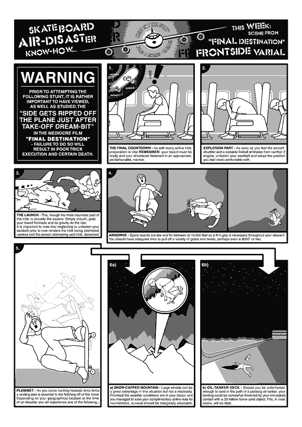 Sad, huh? Here’s the Loser Squadron and that’s always good… liked the rest of the stuff on the page… I’ll tell you what, I’ll just yell if I see something I don’t like. I’ve been kind of unconvinced about Kick the Cat until now, that one was fantastic. Christ, the Monster Truck Bonanza story… Sorry folks, nothing to complain about here. I think you should send them $5 or so immediately (it’s a big anthology and it looks great, don’t worry, it’s worth it), but I’m insanely biased towards good comics. OK, here’s another sample. I know I already used one of these for #3 but sometimes I just have no self-control at all.