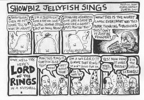 Still here? OK, I’ll make a deal with you. I normally don’t put up this many samples, but I had a hard time narrowing it down to three, let alone less than that. Obviously, I can’t see you here, but if you look at the rest of the samples you should really send the guy money so he doesn’t get pissed off at me or anything. I don’t have an address yet, but I’m working on it, OK? I did manage to find his e-mail address though, so you can ask him what you can buy. He had two books there with the same title, so you should ask him for the one that was all sideways. A little bit better than the other one, mostly because it didn’t have as many songs. Unless songs are your thing, in which case you should get the other one. Or get them both, as they’re only $2 each. On with the funny!