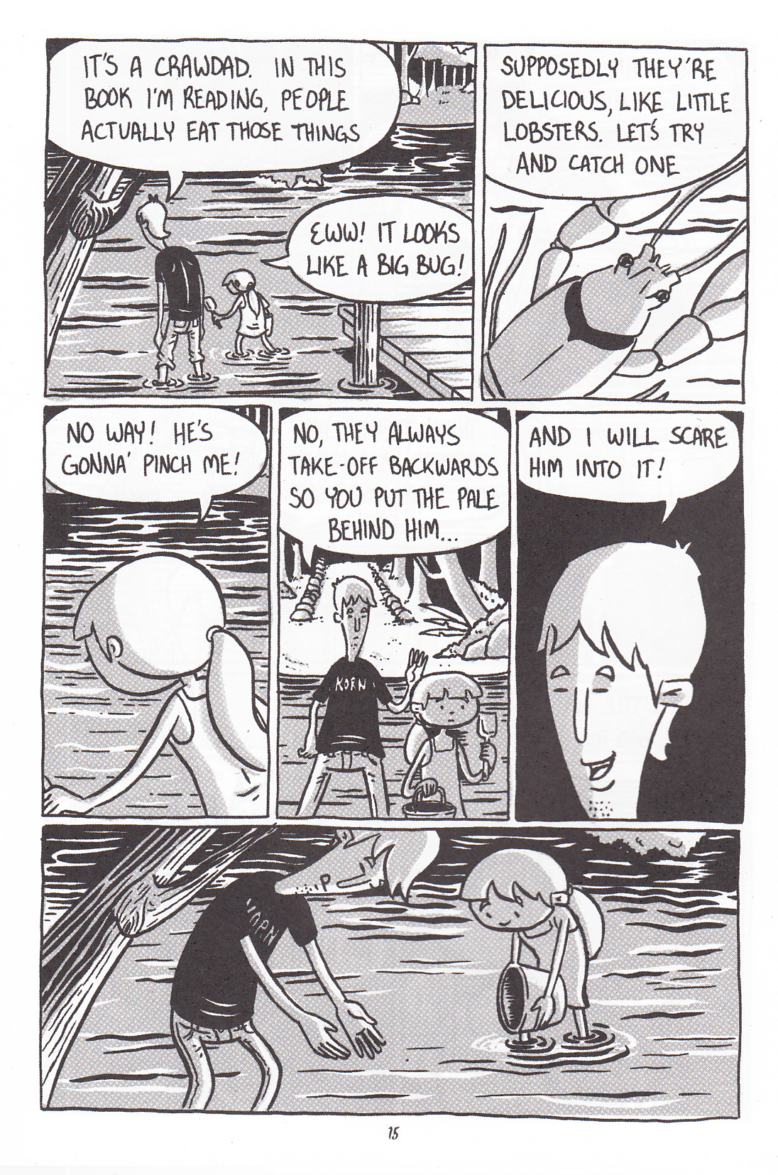 crawdads in the lake and decide to catch one. They end up catching two and, because