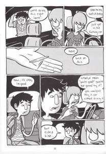 Oh high school, will you ever run out of story subjects? Granted, it is a rich area for telling all kinds of stories, as so much of what seemed so crucial back then looks rightfully ridiculous and overwrought with the benefit of hindsight. The cover ends up being a solid indication of what to expect here (with the evolution of a student), but there’s a lot more to unpack here. Things start off with a young boyfriend and girlfriend going through the records of her Dad and opening up her boyfriend to bands he hasn’t heard before. Jethro Tull comes up, which naturally leads to them deciding to try weed, but they make a pact that they can only try it for the first time together. Boyfriend “knows a guy” (he works at a fast food place), so he makes the arrangement to get some weed. As anybody who has ever bought weed knows, it’s pretty much impossible to get out of that transaction without smoking yourself, so boyfriend ends up in the awkward position of giving a speech in Spanish class while high. This is immediately obvious to everybody in the room, which wouldn’t necessarily be so bad, but his girlfriend is outside his classroom and notices the same thing. This leads to a talk that remains awkward throughout your life, but especially so in high school: the breakup. I’ve probably already said too much, but that’s what I do here. Other subjects include latching onto various personas in an effort to find out who you really are, getting called out on the superficiality of those positions, and learning a valuable lesson about stereotyping a guy based on his record collection. There’s a lot of recognize here from your own high school days, unless you were that mythical creature who always knew exactly who you were (“I was listening to Fugazi when I was 10!”). Check it out, travel back to those awkward/exhilarating/excruciating days. $5