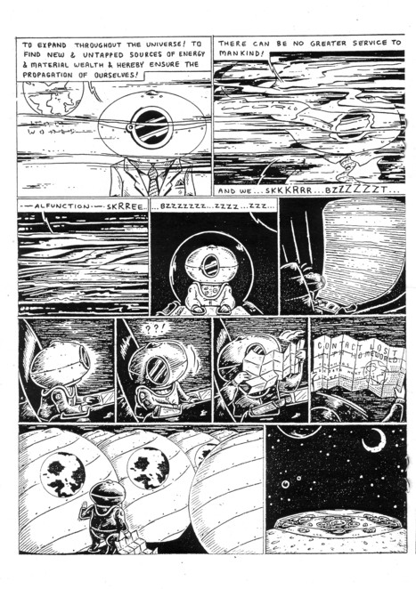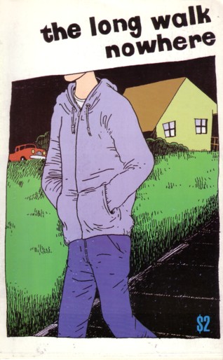 You know, there really are times when it’s pointless to review a comic. It sounds like a cop out, I know, but Trubble Club is a jam comic involving about a dozen cartoonists in Chicago. They meet every Sunday, put together some jam strips, and (I’m guessing here, as the actual information about this process on the website was sparse) put out a new book whenever they put enough material together. Who are these people? Really, this should be all it takes to convince you to check this out: Al Burian, Lille Carre, Ezra Claytan Daniels, Lucy Knisley, Rachel Niffennegger, Bernie McGovern, Onsmith, Laura Park, Grant Reynolds, Becca Taylor, Jeremy Tinder and Marco Torres. If you’re new to this site and these names aren’t familiar to you, plug just about any of them into that search option up there (the full list of artists will be restored one of these days, I swear) and spend some time checking out some quality work. Future volumes, judging from the website, will have other people, and visiting cartoonists will probably get in on the act as well. Honestly, I’m confused as hell about the process here. Every single page is its own story, and it seems most of the time like the next page starts with an idea from the previous page before veering off in its own direction… except for the times when it seems completely new. And I thought for a while that it was one artist per page, but upon closer inspection maybe others are jumping in on different panels. All I know for sure is that this much talent thrown together in a room can’t go wrong, and I hope they keep it up for… let’s see, they’re probably all in their late 20’s or early 30’s… how about another 50 years or so? OK, fine I’ll mention a few of the topics, just to prove how pointless it is to analyze such a thing. An unhygienic stump, Sackley, a doomed giant hot dog, “footsie”, mancakes, and we gotta cook this hog. This is $3 and worth every penny.
