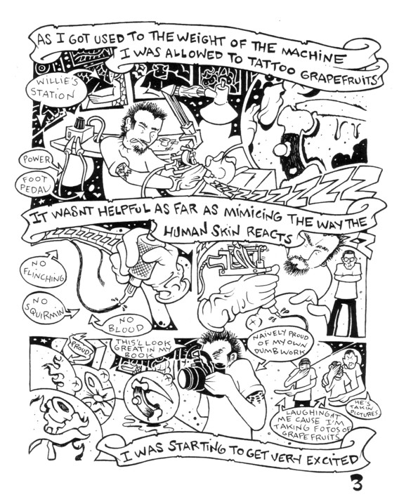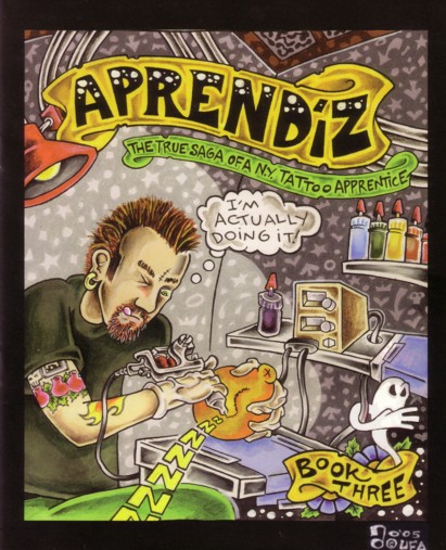He’s back! I always feel like sending out an alert of some kind when I see a new comic from somebody that I haven’t heard from in a decade or more. If you’re new around these parts, or even if you only starting reading around 2010 or so, Adam did a four issue series in the aughts detailing his year of apprenticeship at a tattoo parlor. It was fascinating stuff, with my only (minor) complaint being that if it took him most of decade to tell the story of his year as a apprentice, it didn’t seem likely that we’d be getting the rest of the story. Well, I’m thrilled to report that he proved me wrong, as this tells the tale of everything that happened after that. He also included a few pages/bits from that series, as this is meant to tell the whole story of his time as a tattoo artist. One more thing before I start talking about the actual comic. I just went back and read my reviews for Aprendiz (I actually still have a few issues of that for sale, so if you’re interested I’ll check with Adam to see if he’d like to sell them or would prefer to have them back) and I said maybe the dumbest thing I’ve ever said in a review, and boy howdy is that ever saying something. In the review for the second issue I mentioned that he must be having a tough time as a tattoo artist making comics, because I didn’t see a lot of overlap in the two areas. Holy shit was that stupid. It’s significantly more rare to run into people at comic cons without a tattoo than with one, and I’m thinking that was also true in 2004 or whenever that review came out. Whatta dummy I was/am. It’s always nice to throw in reminders like that, just in case people start to think of me as an authority or something. Nope, I’ve just been doing this a long time. Easy to confuse seniority with expertise. Anyway, what about this comic? It’s the comprehensive story of his time in art school, meandering a bit with a soulless job, and eventually taking a gig as an apprentice to tattoo artists. That story is told in the other series (I still don’t think it would be a bad idea to collect it, but that’s obviously his call), and this is mostly focused on getting his own business off the ground and then keeping it running. One fascinating subplot is that Sophie Crumb, through mutual friends, ended up working as an apprentice at his shop. She was young and new to New York, so she did what most young people do in that situation, and word eventually got back to her dad. There’s a hilarious scene where Robert Crumb did everything but accuse Adam of ruining his daughter, despite the fact that they never hung out outside of work (there was an age gap), and all the while Adam was starstruck while being lectured by one of his comics heroes. Interest picked up quickly wherever his shop ended up (not just his, he did have partners), but doing all this in Brooklyn meant he was bound to run into one completely unethical conglomerate that bought his building. This meant a series of annoyances, large and small, until he eventually got a new place, and boy am I ever shortening that nightmare down for the review. There’s so much more that goes into every aspect of being a tattoo artists than I ever expected, not the least of which is all the business nonsense. Also I loved his art style before (I confirmed this by reading the old reviews), but I’d say he’s gotten even better since then. And the amount of detail! Every page, every panel, looks like it took about a week to do. Even the backgrounds (that would be solid black in a lot of comics) are packed with little doodads and icons. It’s already a lot of story at 140ish pages, but this is absolutely a book that rewards you for taking your time with each page. There are also some short pieces after the story by Sophie Crumb, Jason Mitchell, Myke Maldonado and Mark Bode about their time at the shop, and I’ll leave them as a surprise to the reader. Except for Myke’s, as the finale to that story was terrifying. So basically if you’ve been wondering whatever happened to this guy, good news! Everything worked out for him, more or less, and he even got through the pandemic OK (but that’s apparently going to be the story for his next comic). If this is your first time hearing about him, you are in luck. This is a hell of a read, and has me once again contemplating getting a tattoo with his artwork, especially if my plans work out and I get to New York in September for a visit. Check it out, you will not be disappointed. $20