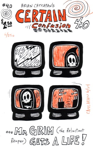 Looks like another one of his books has made the jump to being a full sized mini comic. Wait, does that make any sense? Oh well, I think people know what I mean. The strips are getting a bit smarter, to be perfectly honest. I still don’t like the format for most people, but he manages to make it funny on occasion. Strips in here are about dating, drinking, drunken sex, and art. Oh, and in case I haven’t mentioned this before, Brian hand colors all of the covers. The price has jumped a bit to $2.50, but this is also the best issue of this series yet, so it’s up to you whether you’d like to sample a couple of issues for that price or just pick up the best one. There’s a new website in this one too, although the old one still seems to work…