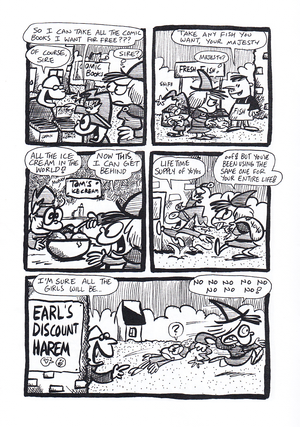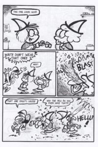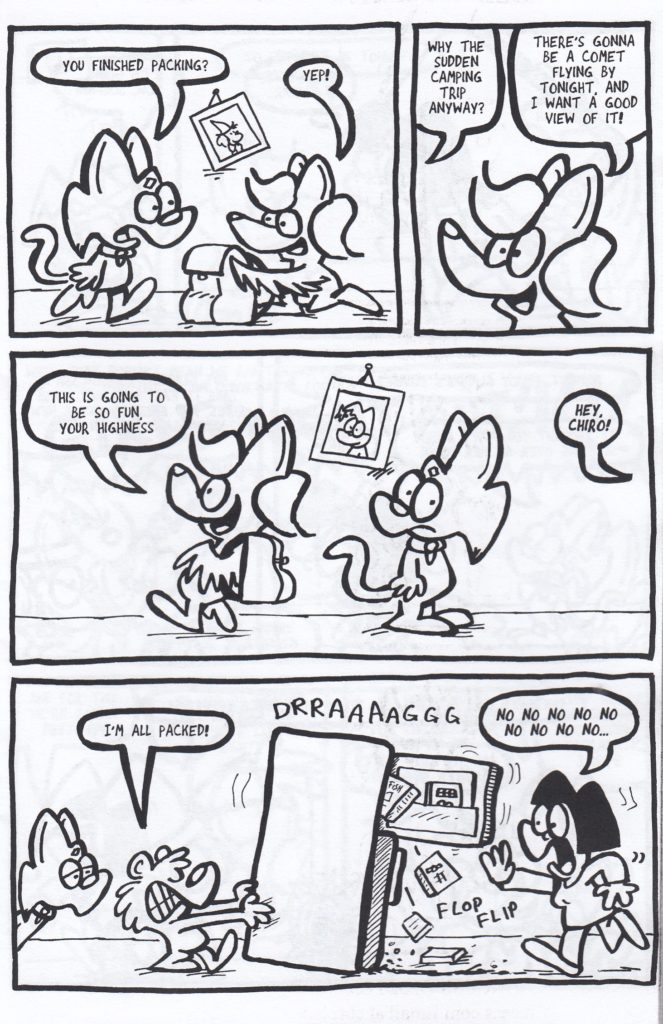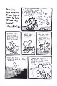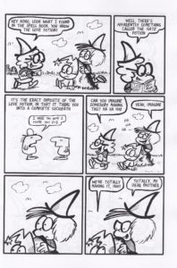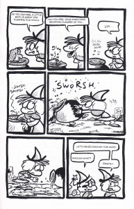 One piece of advice I try to give out to people making comics is to make it easy for anybody jumping in late to get caught up, so I feel compelled to point out that this issue is just called “The Fuzzy Princess” with no issue numbers or other unique markers, which would absolutely be confusing to anybody coming in late. It looks like Charles did this issue as a sort of reminder about his ongoing Kickstarter campaign to put a book together (available at his website), which makes that a little better. As for the comic itself, this deals with Kat accidentally getting his tail chopped off and coming to love a new prosthetic tail that, naturally, has a lot more features than the old fleshy tail. We also learn about Kat’s mom, her life and the traveling she did through a variety of odd locales. I’d say more about it, but this is already a comic with 6 pages of story and I already sampled 1 of them. There’s still room for a few funny bits, so if you’re a fan of his previous work you’re sure to like this one too.