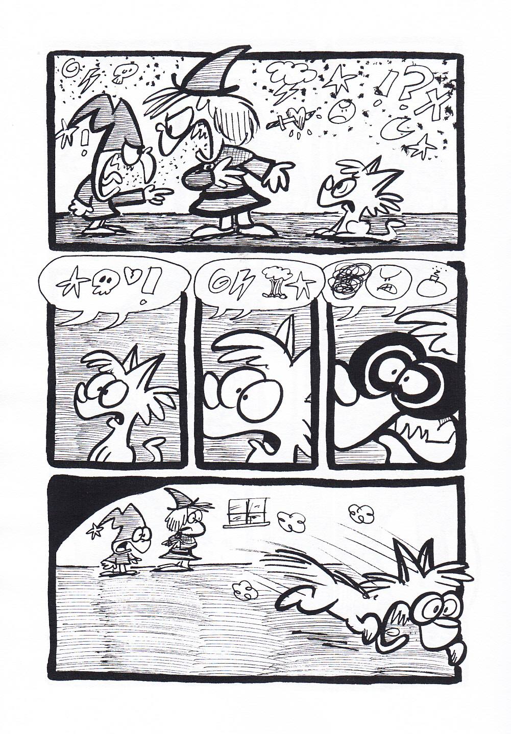 OK, I guess technically this isn’t false advertising, but I was expecting a cat-heavy issue this time around. And sure, there several “ask a cat” strips, but the rest of it is all about witches with no cats involved. Yes, this is my fault for expecting such a thing, so there’s no reason to blame Charles. The bulk of this comic is about Koko and her brother Jodo and their various adventures. They crash land (with a funny bit about them trying to decide the softest thing to land on while they’re falling), end up sleeping in a “cave” (you might figure out this gag before they do), and head off into town to do some shopping. They then meet a frog who says he’s a prince that needs to be kissed by anybody willing to say that they’re a princess, so the rest of the story is their search for that person. Some funny bits for sure, but it’s obvious that I was hoping for more cats. Which makes me biased and therefore a terrible reviewer, but I never claimed objectivity. Subjects for the “ask a cat” strips include the reasons for their hatred of water, why they have so much attitude, why they ask for belly rubs when they clearly don’t want them, why Ben Franklin is considered one of the main sources of evil, the merits of long haired and short haired cats, whether or not a cat would make a good superhero and to please stop leaving dead mice in shoes. It’s another solid comic from Charles and this time around there’s even a full color cover, so give it a shot. Unless your heart is also set on an all-cat comic, in which case check his back catalog. $3