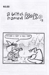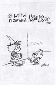 Yep, without a working scanner this is what I’ve been reduced to: pilfering scans off of the artist’s website. Even though it’s of the first three issues of a series where I’m only reviewing the first issue (today, anyway). Sigh. If anybody out there is independently wealthy and would like to send me a pile of money for a new scanner, please feel free to use that email address for some Paypal cash. Also, use the rest of your fortune for good, as most rich people are profoundly boring in how they spend their money. Oh hi, comic book I haven’t started talking about yet! It’s another funny book from Charles, and it’s another one that the kids could enjoy as much as the adults. This time around Koko finally hears of the witching hour (midnight on a full moon) and how that is when the power of witches is at their highest. Koko has never experienced this before, as she goes to bed early, so the rest of the issue deals with her trying to stay awake (with the “help” of her sister) and eventually dealing with her new power level. There’s also an important public service announcement on the back about skeletons and whether or not you have one, so don’t forget to flip the book over when you’re done. $2
