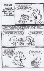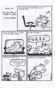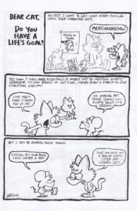 Charles has put out maybe a dozen comics over the last couple of years, so it’s not like he’s in need of any professional advice, but I’ll throw one out there anyway: if you have an open-ended series like this, and you plan on putting out an as-yet undetermined number of future issues, it’s time to give in and start using numbers for the issues. Unless this is the last issue of “Ask a Cat” ever, in which case never mind, but these comics are such a delight that I hope I’m wrong about that. And, as I’ve said before, you’re bound to get a lot more out of these comics if you’ve had cats as pets either currently or in the past, but there’s enough funny in these strips for anybody. Subjects this time around include the truth about their relationship to dogs, what cats would do if they had wings, how cats indicate that they want a divorce, what they think about snow, what cats think about mustard, whether or not they have strange dreams and (and this one hit home with me) why cats insist on poking you in the face while you’re sleeping. I’m pretty sure Charles came up with the actual answer on that one. There’s more, of course, but I’ll leave some surprises for you. I’ve noticed the questions got a lot more fantastical this time around, so maybe this series won’t last as long as I thought, but the man hasn’t run out of ideas yet, so enjoy! $2