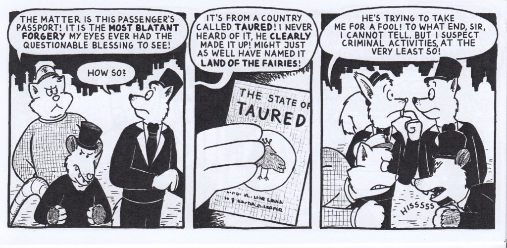 Feels like it’s been ages since I had to go with “Various Artists” for the author name but, well, the premise of this book is apparently that it comes out several times a year with different artists every time. And since it’s put out by something called “Giggle-O-Gram Studios” and I can’t bring myself to put that in the title line, here we are. And I’m a little annoyed that the only website I can find is a Patreon page; not that there’s anything wrong with asking for help, I just generally prefer to link to the fundraising page and a more neutral website. Ah well, can’t have everything! There are three stories in this issue. First up is a story about a movie star crocodile by the aforementioned studio with the terrible name. It looks like it’s continued from the last issue and continues into the next one, but this chapter deals with our hero (or maybe villain? Again, missed the first chapter) watching a procession of other animals coming out of the shower after filming and finding out that each and every one of them is a fraud. Charles Brubaker is up next with a tale as old as time: the first experience of a young child with coffee ice cream. Finally there’s Kaoru Greendrake with a twisting tale about a passport from a made-up land… but what’s if it’s real after all? It’s an interesting mix of stories, but if you’re going to continue one of them from issue to issue some sort of synopsis would be helpful. Other than that, give it a look, see what you think. There’s always room for another regularly produced comics anthology!