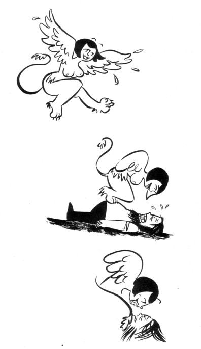 In case anybody out there still had doubts that the Center for Cartoon Studies had a great program, capable of teaching the aspiring cartoonist all sorts of useful things, here’s one more piece of evidence in their favor. There’s already a pile of stuff accumulating, granted, but it seems to be getting more impressive by the week. This is Colleen’s first graphic novel, but she’s still putting out issues of the Tragic Relief comic on a regular basis (as least judging by her website). This is the silent tale of a young man who’s living with his mother and his tendency to find love in the oddest of places. A mermaid, a genie and a harpy (I may be completely off base on that last one) all play a part, as does the profoundly overprotective mother. One of the many impressive feats of this book is that I’m still not sure whether the mother was malicious or just cluelessly “lucky”, although that won’t make a bit of sense to anybody who hasn’t already read this. As for the art, few people have done so much with so little. There are no backgrounds to speak of, many of the images are deceptively simple, and yet damned near every one of them moves the story along, often with the subtlest of glances or shrugs. It’s obvious, after looking at the work coming out of graduates from the comic college, that the future for comics is brighter than it’s been in years. At least, it is in terms of the quality of the work being put out. Whether or not any of these poor kids are ever going to make a living at this remains to be seen. I should also point out that this hefty thing is a measly $7, as it’s on recycled paper.