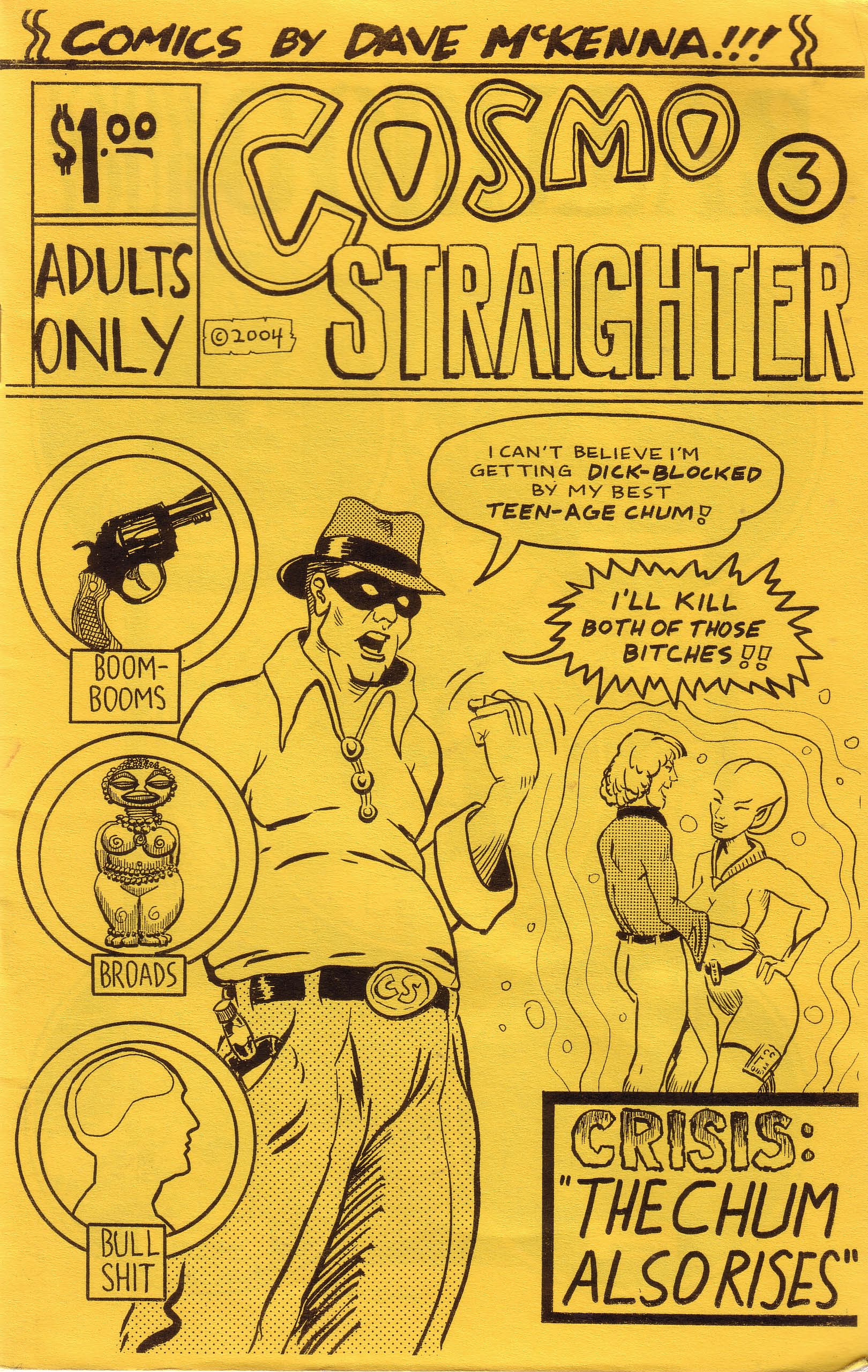 Do you have an encyclopedic knowledge of all past small press comics stories and creators, no matter which anthology said stories appeared in? If so, you’re going to find this issue of Cosmo Straighter (I love how Dave just gave up completely on keeping any kind of uniform spelling of the title) a bit disappointing. There are four stories in here, two of which have already been collected (in Mauled #1 and Legal Action Comics Volume 2. And, really, those are the big ones, with the other pieces being only a page long, and I even ruined that a bit by using one of them for the sample. The other page defies description, so I’ll leave it as a surprise for people who find this comic. Still, if you haven’t read those two anthologies mentioned, or even if you have and have forgotten them, the two big stories in here are fantastic. First up is “Meet Komo…”, the story of Sharon Stone using her influence to get her husband in to see a komodo dragon at a zoo and him needing major reconstructive surgery when all was said and done. Pop culture stuff like that often flies right out of my brain, and I had forgotten all about that incident and the mockery that followed. The other story is one I remember clearly from Legal Action Comics Volume 2, and it deals with the “real life” story of an actress who was hired to deal with a real life King Kong in the 30’s… sort of. If you haven’t seen it, again, there’s no sense in me spoiling the surprise. And as those two anthologies mentioned came out many years ago, maybe you haven’t seen anything here and it’s all new to you, in which case you should buy it immediately. If nothing else you get that cover out of the deal, and you really need to embiggen that image and soak it all in. And if you can’t find a copy of this anywhere, at least it’ll be available in this rental scheme I’m working on… $1