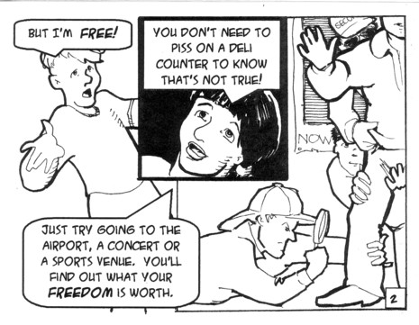 I think it was SPACE 2008 (or, sadly, maybe even 2007) when Dan asked me if I was ever going to get around to reviewing the first issue of this series, the one that “brought him back” to mini comics. Seeing as how SPACE 2009 is coming up in a few days, that served as a helpful reminder that I STILL hadn’t gotten around to it. And the verdict is: this is one solid comic, and I see why it (in part) convinced him to get back to making comics on a regular basis. Hell, a more than regular basis, if you look around this page and then check around to see how many other creators have this many books on their page. It starts off a little rough, with a really awful pun about fishing (at least to somebody who mostly doesn’t like puns, so what do I know), then gets great in a hurry. Dan quotes from a series of newspaper articles involving odd stories like a nine year old suspended for sexual harassment, an angry pack of chihuahuas attacking a cop, a man dying right after bowling a perfect game, terrorists kidnapping an action figure and an odd story about airport screening. With each of these stories is a funny comic panel, as these stories are crying out for some feedback. Next there’s an obituary for Clay Geerdes, (a small press pioneer), some tips and recipes and a collage covering the center spread. Finally there’s the big, um comic in this comic. It’s a conversation with two people, one of whom is convinced that he has all kinds of freedom, and one of whom manages to convince him rather easily that that’s not the case. Three cheers for Dan being pissed off about the absurdity of mandatory seat belt laws too; I’ve been thinking I was in the minority in being annoyed about that. If I don’t mind flying through my windshield if I ever get in a wreck, why should police? This is well worth a look, clearly, and probably a good starting point for anybody who wants to check the man out and is a bit overwhelmed with all the variety on his page. $1