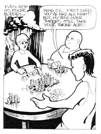 Hey look, a fable! This is the story of Cyrus Helton, a sad man who has terrible luck, and a literal raincloud that follows him everywhere he goes. Cyrus has no luck at work, with his landlady, at cards, and has no illusions about anything ever changing. Which, of course, means, that something has to change. Cyrus wins the lottery, which dispels his cloud… but change isn’t always a good thing.  I’ve probably said too much, as this is a tiny thing and it’s hard to say anything about it without giving the whole thing away. Not exactly a shocking moral to the story, although Dan maybe could have spent another panel or two setting up why exactly change isn’t a good thing in this case. I get what he’s trying to do, but it’s still a bit much to see Cyrus pining away for the bad old days. Still, it’s a decent little story, and as a wise person once said “those who can, do; those who can’t, complain about those who can”. Or something like that, I always get all the good quotes confused. Point is that yes, I am aware of how silly it is for me to request that the artist add a few panels to their story to make it come together just for me, but hey, that’s the nature of having a website all about the mini comics.