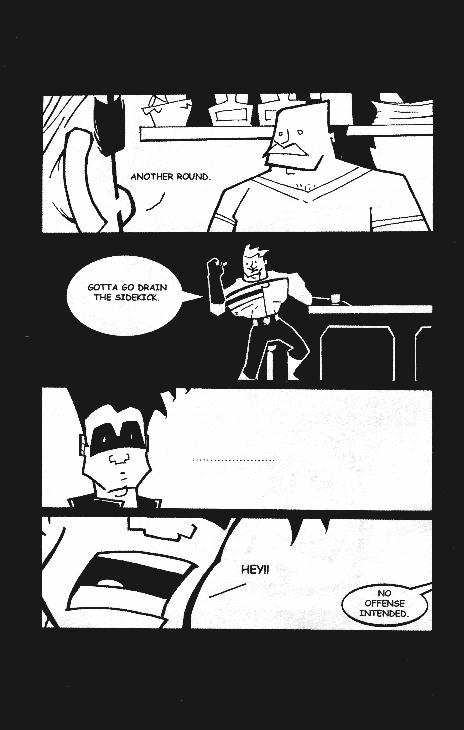 There’s good superhero parody, bad superhero parody and than there’s the kind that makes no sense to people who haven’t living and breathing this stuff for years. This is good parody, sure, but it’s very insiderish. That can be a good thing or a bad thing depending on your point of view, as it’s not like people who don’t read comics are going to pick something up with a title like this anyway, right? Anyway the concept is that a bunch of superheroes are hanging out at a bar after a hard day of fighting crime. More than a few funny lines ensue and there’s something absolutely mesmerizing about the art. It just feels like it’s moving all the time, or maybe it’s all those drugs in the water. A solid effort all around. There’s just one little problem, and this is my nitpicking and leaning towards the negative more than anything else: it’s the first issue of a series. As a novelty it was fine, I’d recommend it to anybody who likes a good parody. As a continuing series, well, I’m not sure if superheroes sitting around a bar and chatting really has that many places to go. I’m sure they have some ideas of they wouldn’t have made a series out of it, I guess it’s just that I have my doubts about its longevity. This issue earned a look by me for the next couple of issues, but I’m going to have an awfully critical eye on this one. Check out the website…