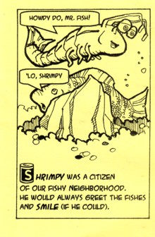 Ah tiny comics, you are at least always easy to talk about. This one all about the short life and dreams of Shrimpy, a ghost shrimp who only lived to 20 (days), ate fish poop and dreamed of better things. It’s funny, the art is great (especially considering the odd creatures in a fish tank), so what more could you ask for from a tiny thing like this? Dan sent another mini along too, so I’ll get more of an idea of his work then, but for now I’m impressed.