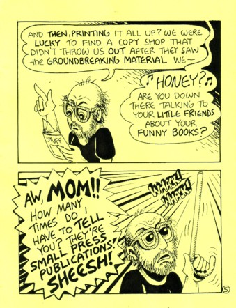 OK, technically this is a Dan Taylor production (as this is a series of anthologies he’s working on) but, as this issue is Brad Foster only, I thought it was a good chance to get the man a page on this site and have his links be more readily available. Brad has been doing comics for as long as I can remember reading them, even if I’ve mostly missed his stuff when it was out. I do remember that he did an adults only comic many years ago (the title has gone down the memory hole) that led to me realizing that it was possible to see naked ladies in comics and not have parents or authority figures pester you about it because they were, after all, just comic books. This is a shortie and the story is mostly Brad bitching about how much better things were in the old days, when people actually had to draw their own comics and wait by the mailbox if they were trying to put together an anthology. Trust me, it’s much funnier than it sounds. It’s only a buck and this is somebody you kids today should know about, if you have any interest in the history of mini comics…