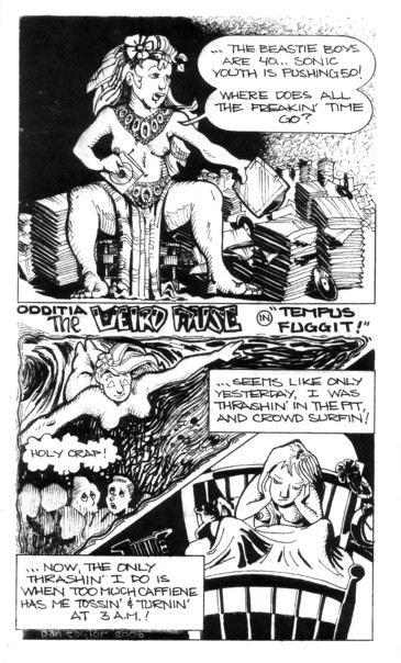 This mini (or at least half of it) is about a subject near and dear to my heart: where the hell does all the time go? A perpetually naked older lady asks this question, noting that Sonic Youth is pushing 50 (!), but also getting some joy out of the fact that the hot starlets of today will eventually be broken down old crones like everybody else. Well, I guess old men are called “fogies” more than “crones”, or at least they are in the 1920’s bubble I live in. Also in this issue is an interesting story about wishful thinking in an abuse victim, and a really, really awful pun in the story on the last page. Seriously, just let your eyes skip over that page if you don’t want to groan loudly. Other than that it’s a pretty solid issue though, and I was thinking that I had already gotten around to reviewing #1 of this series, so that should be up (seriously) in a few weeks or so…