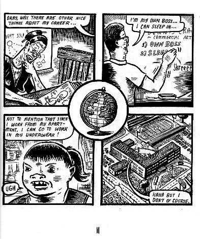 This reviewing thing is, at times, the easiest thing in the world. Dan Zettwoch, Ivan Brunetti, John Hankiewicz, Jeremi Onsmith, Chris Cilla, Ted May, David King, Bryce Somerville and Johnny Ryan contributed to this collection of one-panel gag strips. So what you have here is some of the funniest people around and probably the best title for a collection of this type imaginable. What, you’re still reading this? OK, I’ll also mention that I had a really hard time just picking one sample, but I’m trying not to give too much away for free here. It’s $4, as you can see, and it’s available here, as you can see. What’s stopping you? Don’t you like to laugh?
