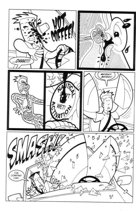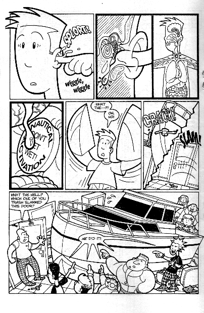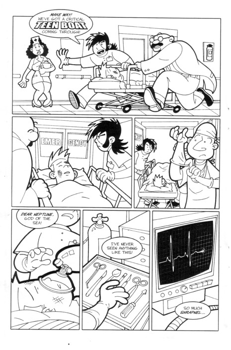Back to the beginning? It’s been awhile since I’ve read this, essentially the origin story for Teen Boat. This tells the tale of the young Boat growing up (in flashback form, sprouting barnacles and propellers at odd times), then getting found out at school. Naturally, as a young outcast who’s desperate to impress a pretty girl, he accepts the invitation of a group of jocks to let them use him as a party boat. Soon, however, they get far enough from shore for some illegal activities to start occurring, and this moral dilemma is where we’re left at the end of the first issue. The series improved over the years, granted, but it was pretty well perfect to begin with. This was made in 2001 and it astounds me to think that people who love comics (and also have a sense of humor; sadly, they’re not necessarily the same people) might not have heard of this by now… which is why I’m bringing it up again.