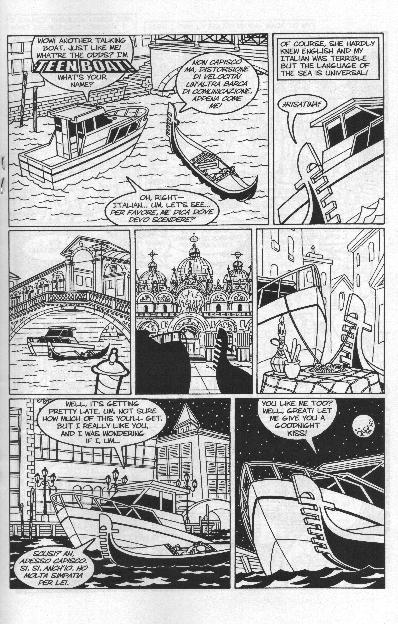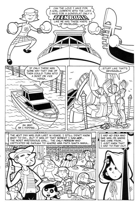 And here I was looking for a fight in this issue, what with that provocative cover and all. No such luck. Still another solid issue, don’t get me wrong or anything, but I was looking for more mayhem. What you have is Teen Boat trying to figure out how he could ever love a normal girl and how he could ever love a gondola. More on the “angst” and less on the “thrill” this issue, I guess you could say. Still, 8 pages of angst probably makes a lot of sense in terms of the general overall story, and might help the pacing a bit for a graphic novel. Oh, let’s be honest. I’m just annoyed that there are no more pirates.