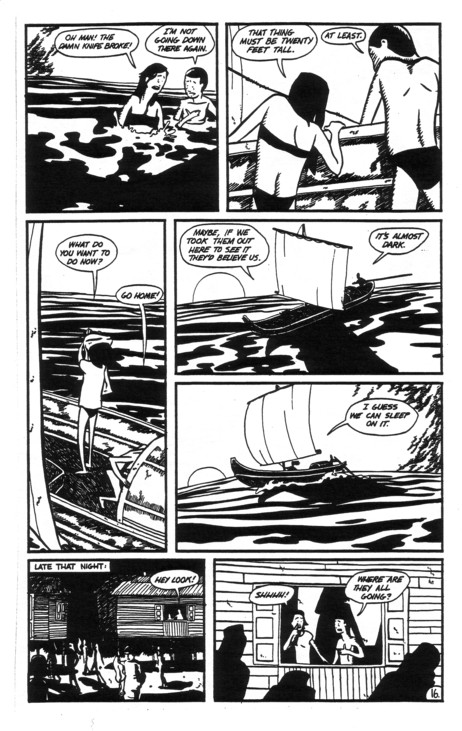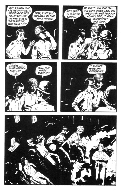 You know what I miss about reading comics? Being able to go to the store every month and reading a new installment of a story. Granted, that was back when I was reading mostly genre crap, but dammit, I knew that every month (give or take a week) I would be getting another installment of Quasar or whatever the hell it was. The list of people in the small press world who keep anything remotely approaching that kind of schedule is tiny, and it’s something I don’t think about all that often, to be honest… until I come across something like Reporter. The last time I read a new issue of this was three years ago. Granted, this didn’t JUST come out, and it’s my fault for not reading it when it did, but even so, I’m not seeing any new books on the website either. Look, if you have a potential epic like this, I know there are plenty of things in the world to distract you from doing another issue, but have a little sympathy on the poor readers you’ve hooked into really enjoying this story. OK, rant over, and this isn’t just about Dylan (obviously, as he’s running Spark Plug Comics along with putting these out and living some sort of, you know, life), it’s just a pet peeve I have with the small press books in general. Oh yeah, the comic. This is the story of an African-American group of soldiers in a war of some kind. It’s never explained much more than that, and this is basically them walking through enemy territory. An OK issue on its own, it remains to be seen how it fits into the big picture, which could always make it a much better issue. Still, not much to latch onto as my only dose of Reporter in so long, which explains the bitch-fest above. $3