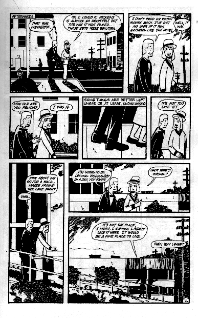Why on earth would you put out a magazine like this (as it contains brilliant and vibrant colors throughout) and give it a black and white cover? Sorry, I just felt the urge to get my one tiny complaint about this issue out of the way early. This is more of an anthology than a traditional magazine, if that makes any difference to any of you. There are two pieces here that are full of text, one of which is Austin discussing the art of Lois Lenski at length and the other is an interview between Onsmith (interviewer) and John Hankiewicz (interviewee). This interview is absolutely priceless, as who in the comics world would you want to see interviewed more than John? OK, it’s possible that there are people you’d rather read about, but John’s work contains so much in every panel and every issue that it was greatly informative to see him break down what he’s doing (or trying to do, in some cases), how he manages to put that level of detail and crosshatching into every panel and how his creative process has evolved through the years. Then, of course, there’s the comics. This begins on the inside front cover with two short pieces by Mollie Goldstrom (contemplative pieces on the outdoors) and quickly moved to three stories by Austin. There’s a trip to the Planetarium as a child and his innocent and wide-eyed reactions, the second part of a series called Francis (and I really should have read the first issue before this), and the memory of a trip to the movies with his parents as a child. For anybody who complains about the price of these magazines, and they are a bit steep in these times, the fact that Austin’s work is able to be produced in color because of it is worth the price of admission. That still leaves two comics: a piece by Fiona Logusch about the entanglements of relationships and how hard it is to get free and an autobiographical piece by Dylan Williams about his mail relationship with Alex Toth, what he learned from him and Dylan’s own progression as an artist through the years. As a whole it’s damned near flawless, assuming you’re a fan of the people mentioned above, and why on earth wouldn’t you be? Even if you’re not, picking this up and reading this will make you a fan. Don’t take my word for it; a glance around this website will show you work from everybody in this issue, then you can make up your own mind. $10