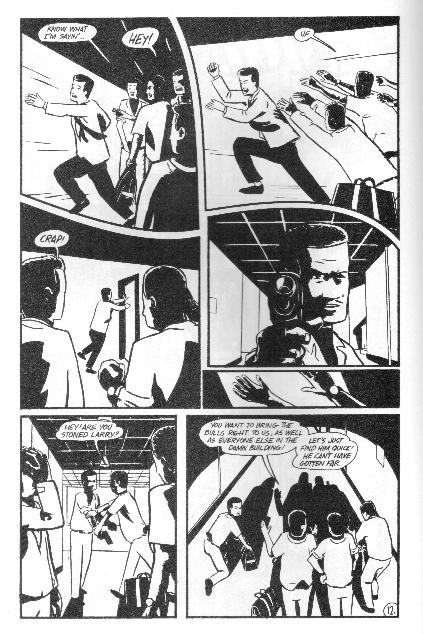This seems to be a page full of rants, doesn’t it? It’s purely because I see this as something that has serious potential to be read over and over again, something that rewards careful reading… and something that doesn’t come out nearly often enough for this impatient brain to deal with. Just wanted to make that perfectly clear. This issue is essentially a series of philosophical discussion, done with a new hire, Adam Jones, as he wanders around an office party. He manages to annoy everybody he talks to, but the conversations along the way are fascinating, dealing with making a living at what you love (and how, if you can’t make a living, it must be because you’re not any good at it), religion, and politics. And yes, I probably should be more descriptive, but when a book is a series of conversations, detailing the exact direction of those conversations kills more than a bit of the mystery. I have no idea how this fits into the grand Reporter picture (although Dylan does insist on the inside cover that it all does fit together), but it’s a fairly compelling book on its own. I noticed looking around the page that I never got around to reviewing Reporter #1. Maybe in a few weeks (which sometimes translates to “a few years” around here) I can get around to that, read the whole series for the first time in years and get a more complete picture of where this might be going. Hey, this page is already fragmented enough, why not have a complete series review under the first issue? $4