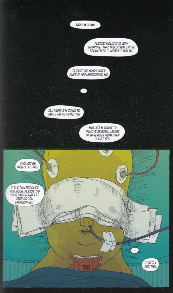 It seems like I’m on a roll recently with reconnecting with comics artists past, people whose work I’ve enjoyed but lost track of over the years. I loved Changers, another series of Ezra’s, but it seemed to vanish. Well, after reading his website I now know that it just moved on to a series of other mediums, much like this story was apparently an interactive app for years before the book was published. I’m very much a “published work” kind of guy, so I’ll just focus my comments on that. Because when it comes to the story itself, this one is in a league of its own. Stunning, inventive, viscerally disturbing, oddly hopeful at times while completely hopeless at others, it’s yet another difficult book to talk about without giving some things away, and this time I’m going to do that. So if you’re just looking for the gist: this is an incredible science fiction story that everyone who can read should check out. Clear enough? This is the story of a retired couple with money who end up funding a controversial project with the condition that they be the first test subjects. The project? Human cloning. But upgraded human cloning, meaning the new versions would be better in every way than the old ones. This is slowly established (unless you’re one of those dummies who reads the back of the book first; don’t do that to yourself), and the slow burn is what makes it all the more horrifying. As this is the first test of the process, things go wrong in unexpected ways. The clones come out (for lack of a better term) half-baked, not fully formed, looking more like potatoes than people. And there’s also the unexpected fact that they can’t be very far from their clones without both of them falling ill and possibly even dying. The bulk of the book is about the elderly, frail humans getting to know their other selves; the differences, the similarities, where it all went wrong in their lives and how their clones could do better. I’d recommend this book for the conversations alone (neither of the humans are dummies, but they’re still outclassed compared to their clones), but every aspect of the story comes together so beautifully, I’m able to unreservedly recommend the whole thing. I’ve never read anything quite like it, and this is coming from somebody who’s sick of clones in stories and thought there was no new narrative ground left to cover. Wrong again! $19.99